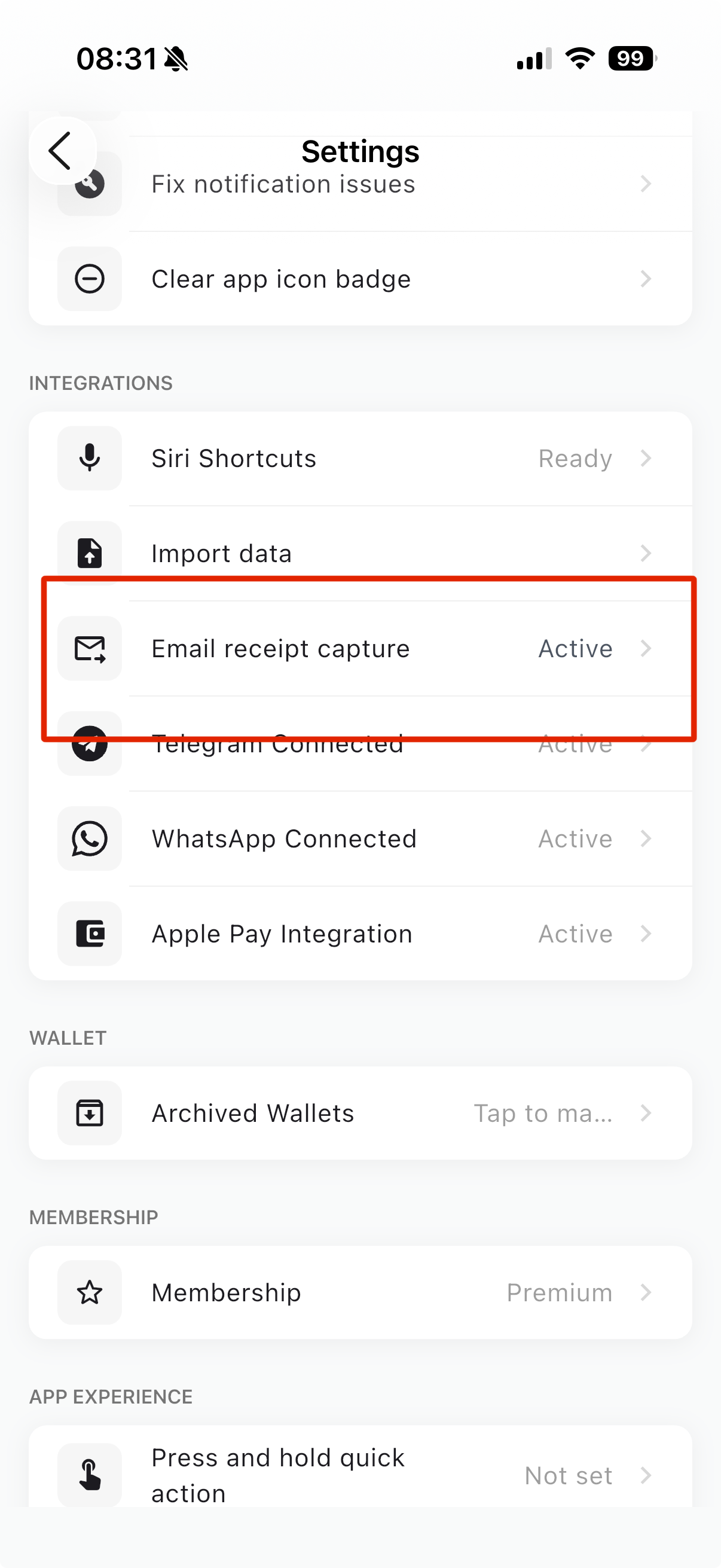 Step 2: Turn On Email Receipt Capture